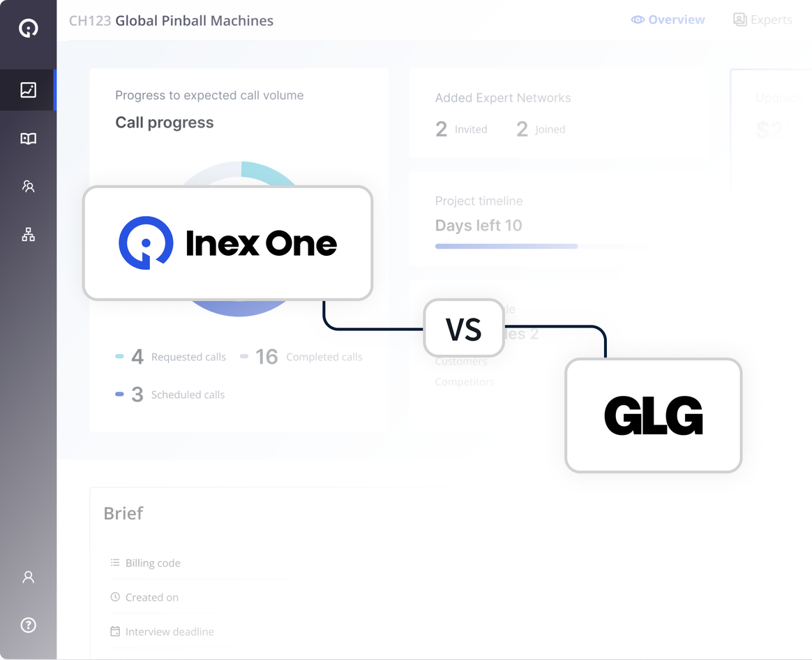 Inex One gives you access to multiple specialized expert networks in one dashboard, under one single contract. Contact us to learn more, or visit the Expert Network Directory for an ever-growing list of all the networks that we come across.