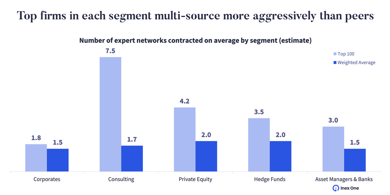Consulting firms lead the way in multi-sourcing, with the largest buyers engaging dozens of Expert Networks.