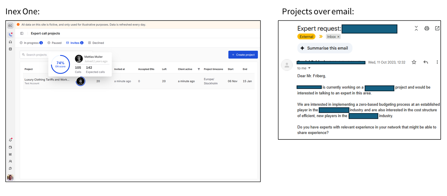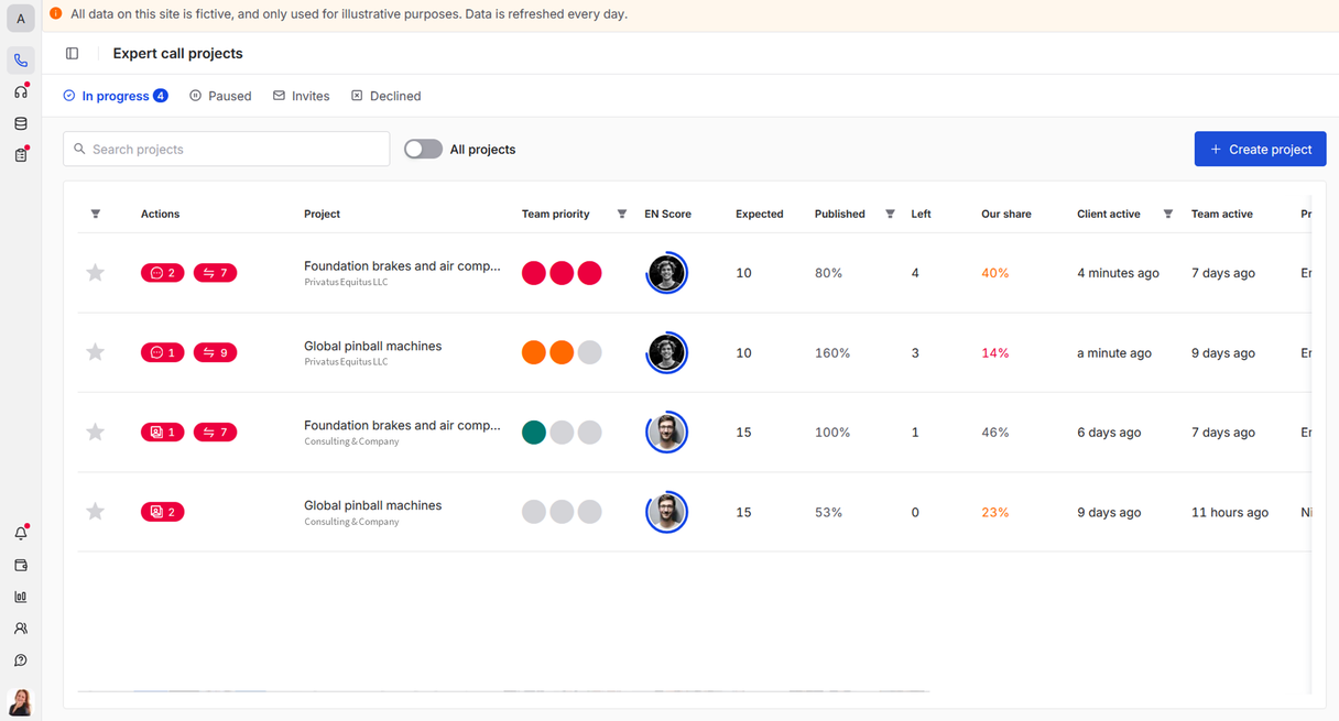With Inex One, expert network associates see the project status live, across all projects. They can plan their day optimally and adjust focus between projects in real-time.