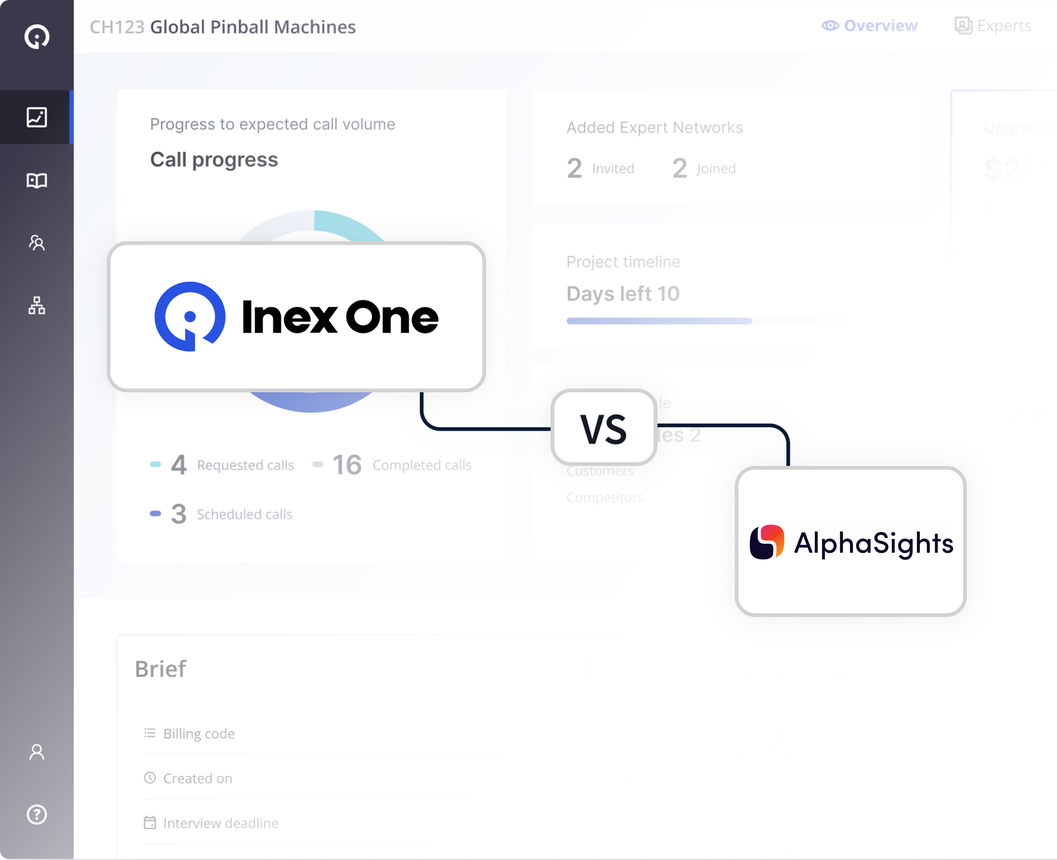 Below, you can compare Inex One with Alphasights. You’ll see how the two expert network platforms stack up across all relevant metrics.