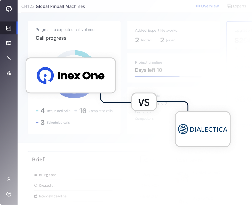 * Dialectica obscures its true pricing by charging for “credits”. While the price per credit may be lower, Dialectica routinely charges multiple credits per expert call. This makes the true price higher. For comparison, Inex One’s prices are only quoted in the currency of your choice (USD, EUR, GBP etc.), with median historic prices being $1,150/h when including "premium" experts. See our explainer on expert network pricing here.