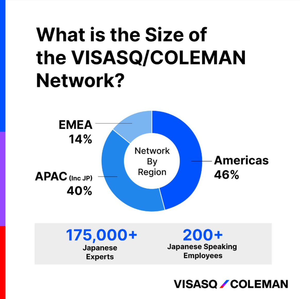 In November 2024, VisasQ-Coleman announced they had more than 650,000 experts globally, 175,000 of which are in Japan. This makes it one of the larger expert networks globally.