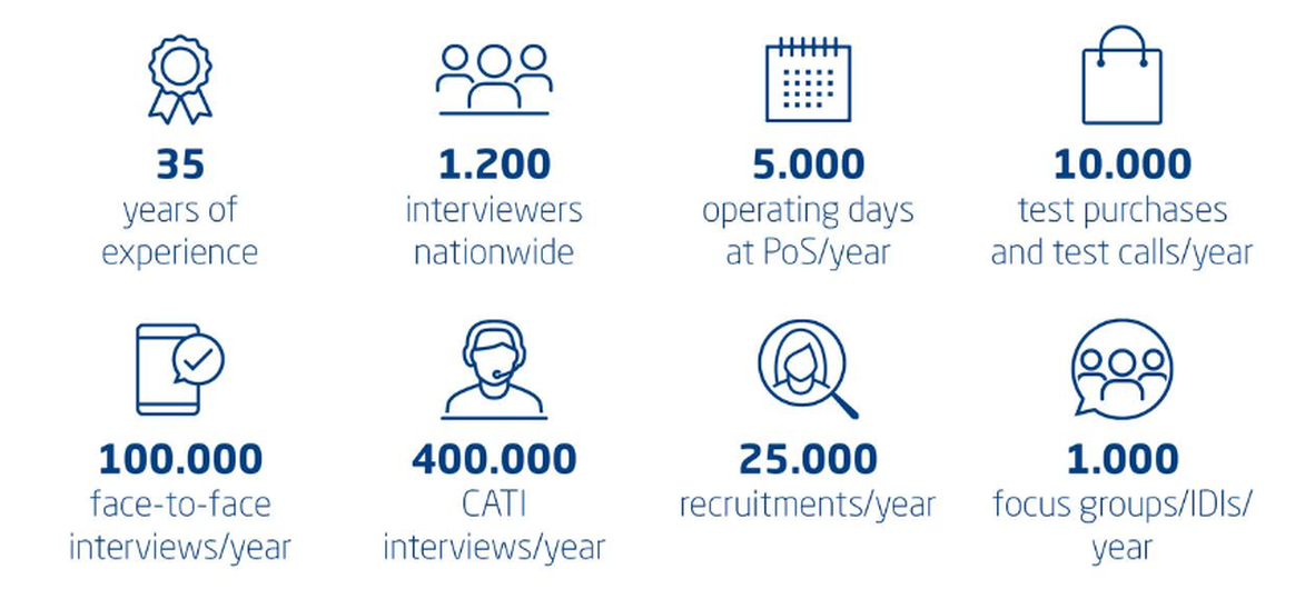 In 2024, Krämer stated that it was doing 400,000 CATI interviews per year, 100,000 F2F interviews etc.